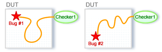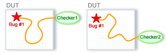 Suspects are used to determine what is going on in the design and where the error source is. Thus OnPoint can distinguish the different paths taken by the different bugs to the checker and categorize them accordingly. More specifically, it can distinguish between the following situations which are especially hard to detect using only error messages.